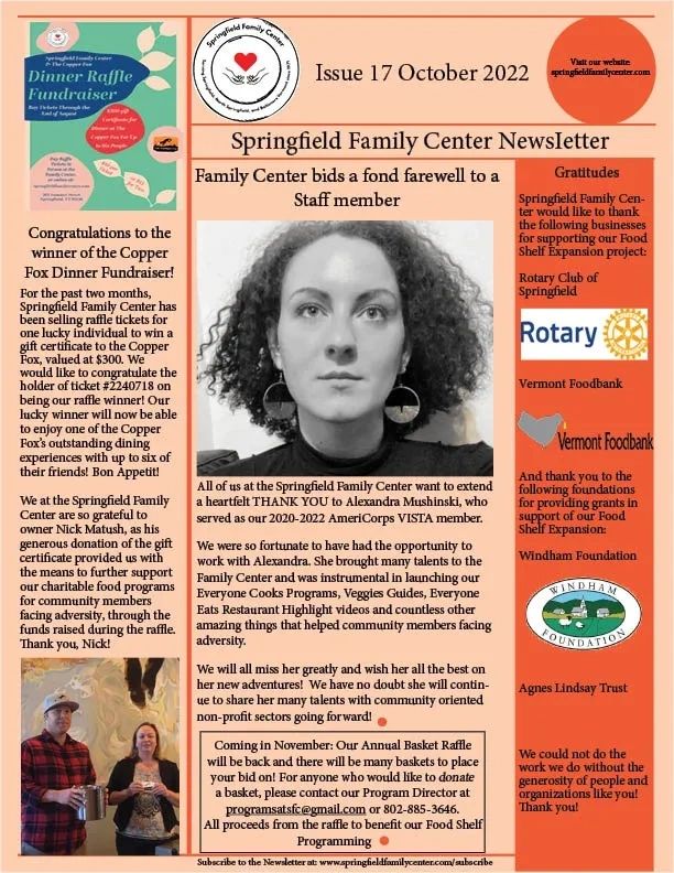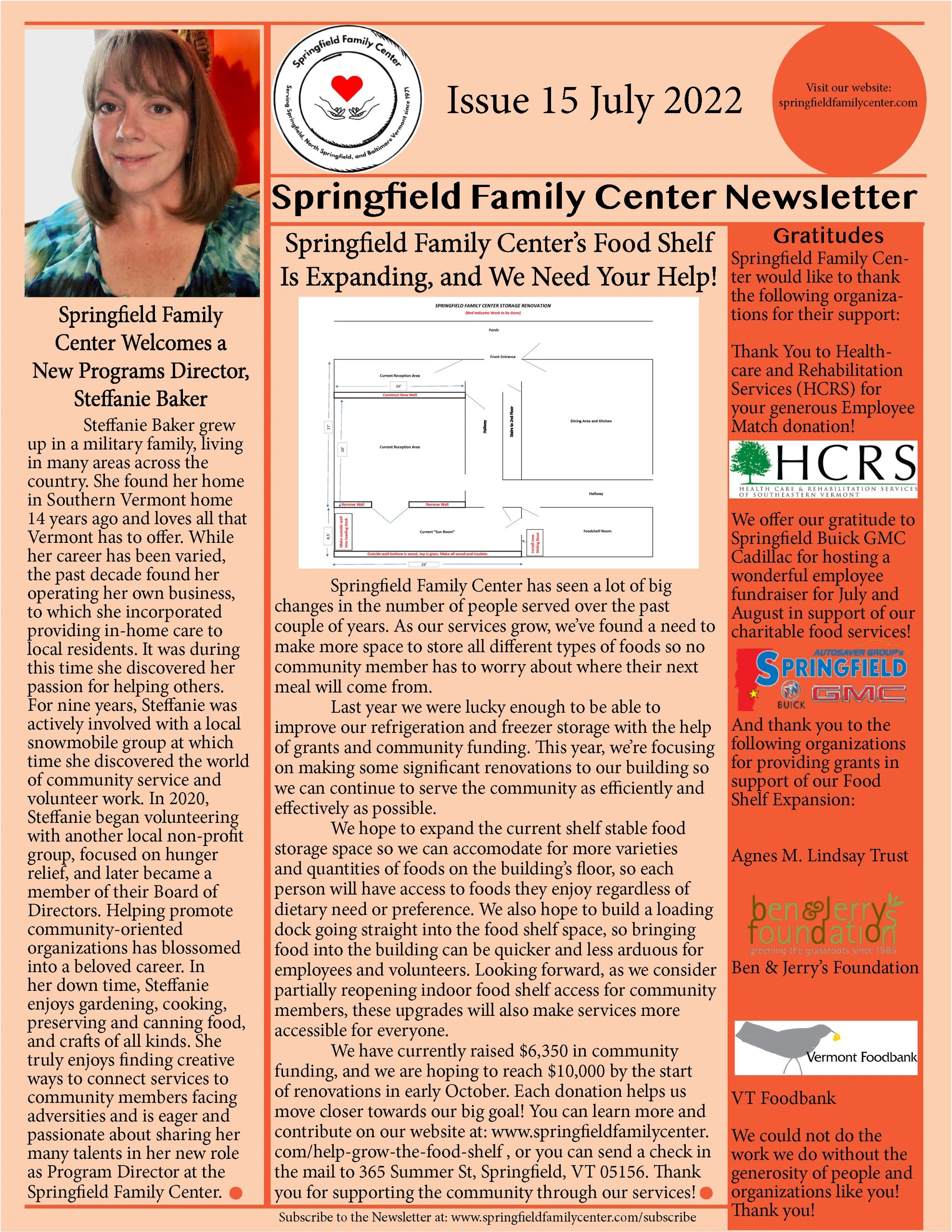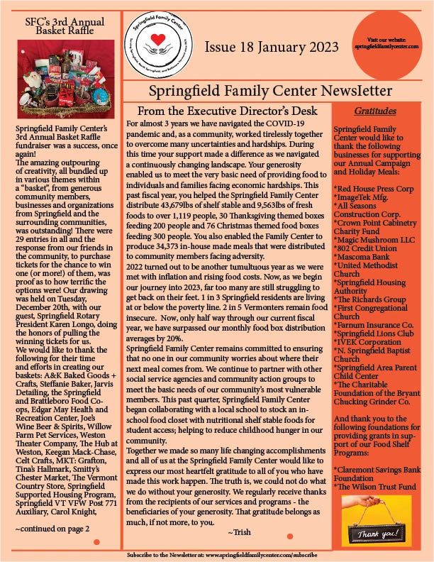 Sign up to receive biweekly newsletters and keep up with events and updates from the Springfield Family Center.